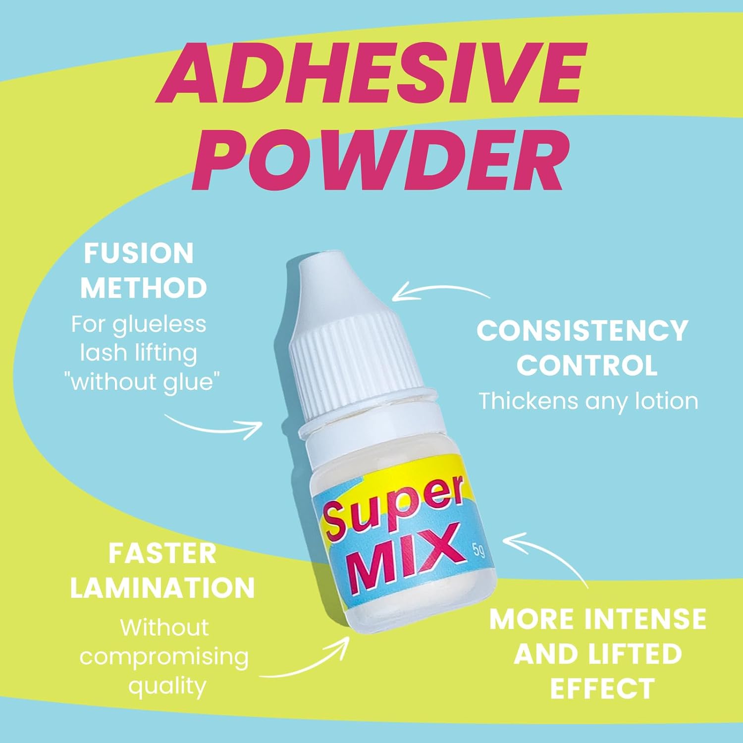 - What's Super Mix Powder? It's a mix of lifting products that can be used to fix eyelash without using glue. A gentle and comfortable alternative for sensitive eyes